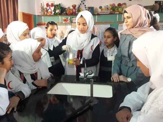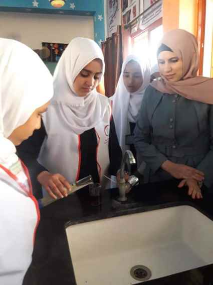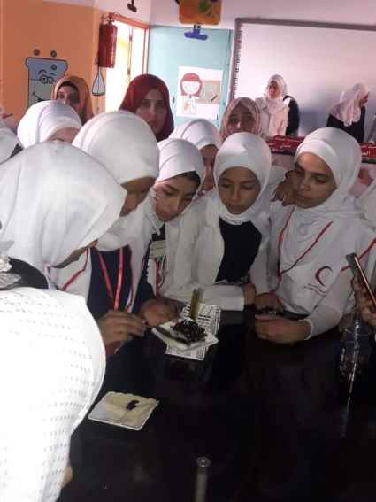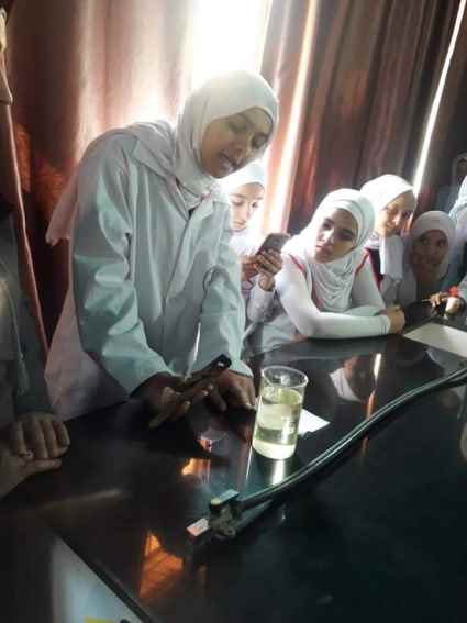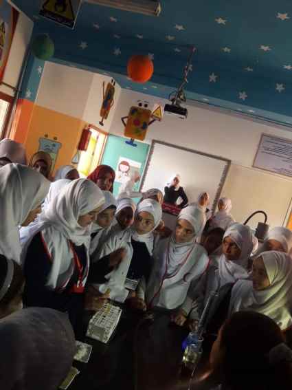 وتمثل الوفد الزائر من مدرسة دير ياسين الاساسية ب للبنات بقيم المختبر أسماء الشاعر وصديقات مختبر العلوم .