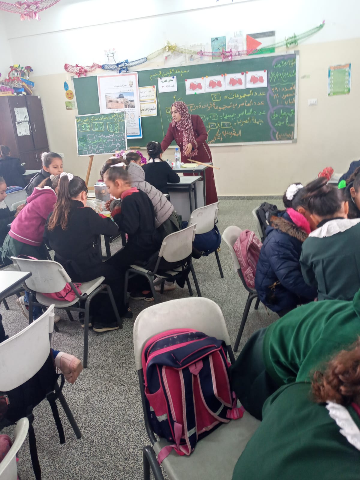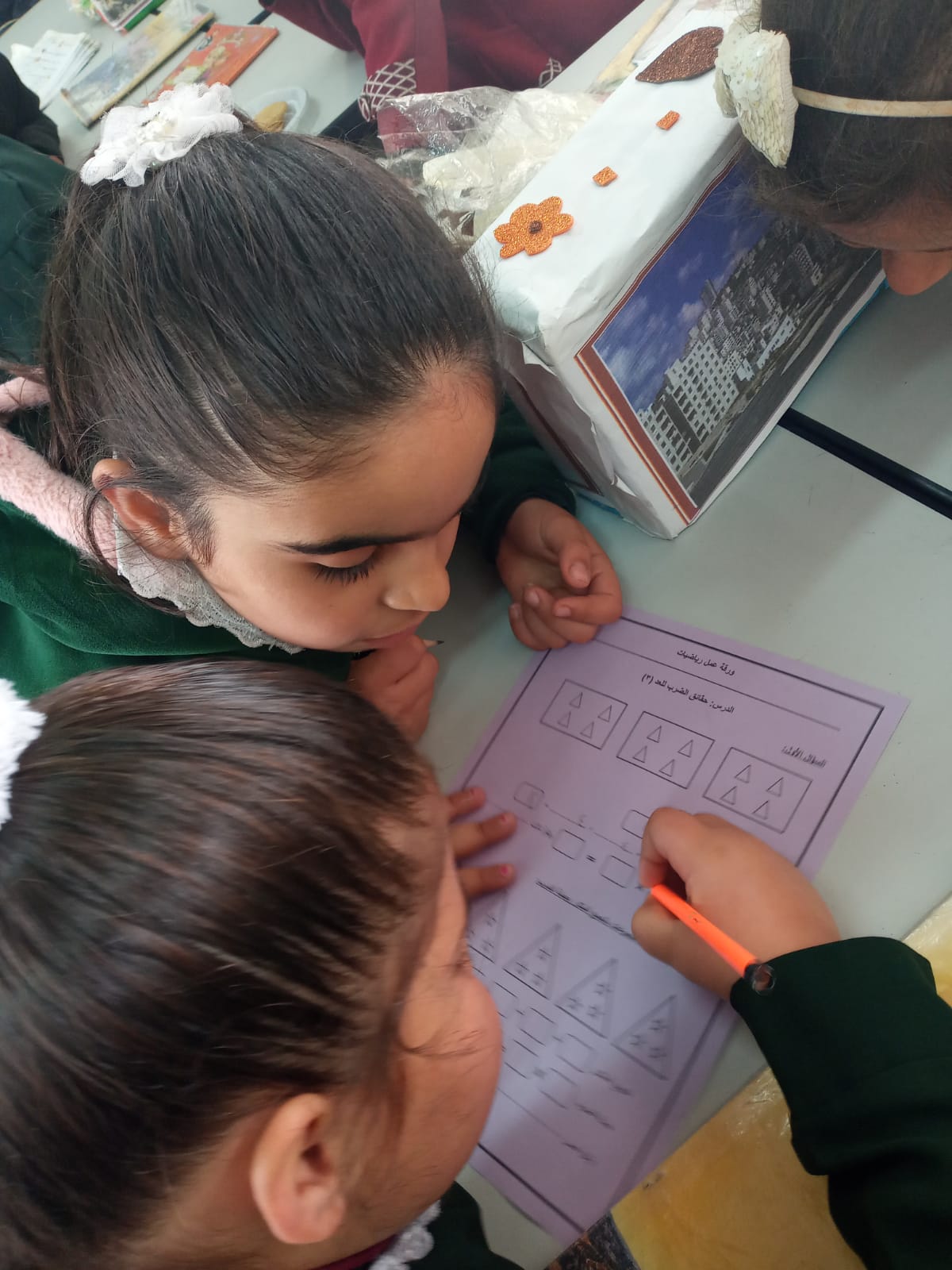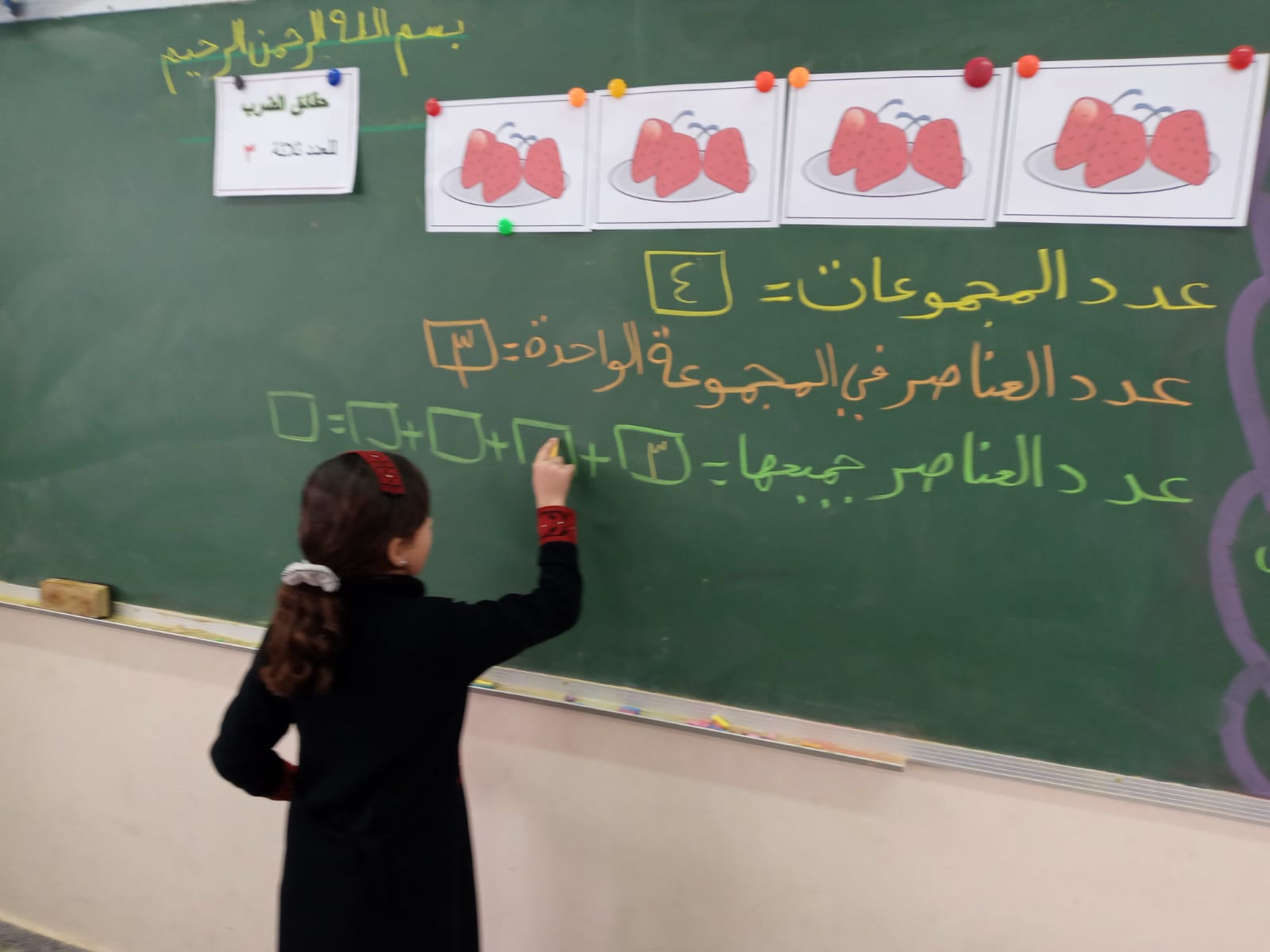 درسها اليوم كان عن( حقائق الضرب للعدد ٣) استخدمت فيه العيدان الملونة لشرح مفهوم الضرب عن طريق حوار بين العدد ٢و٣