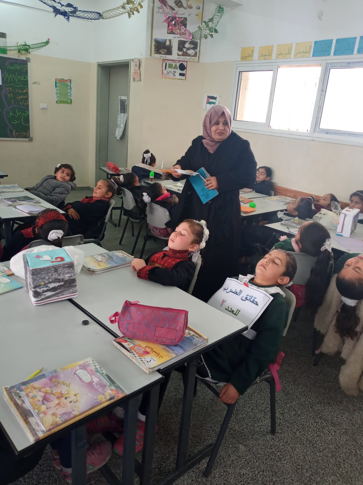 وقامت بتدريب الطالبات على أنشودة للضرب.