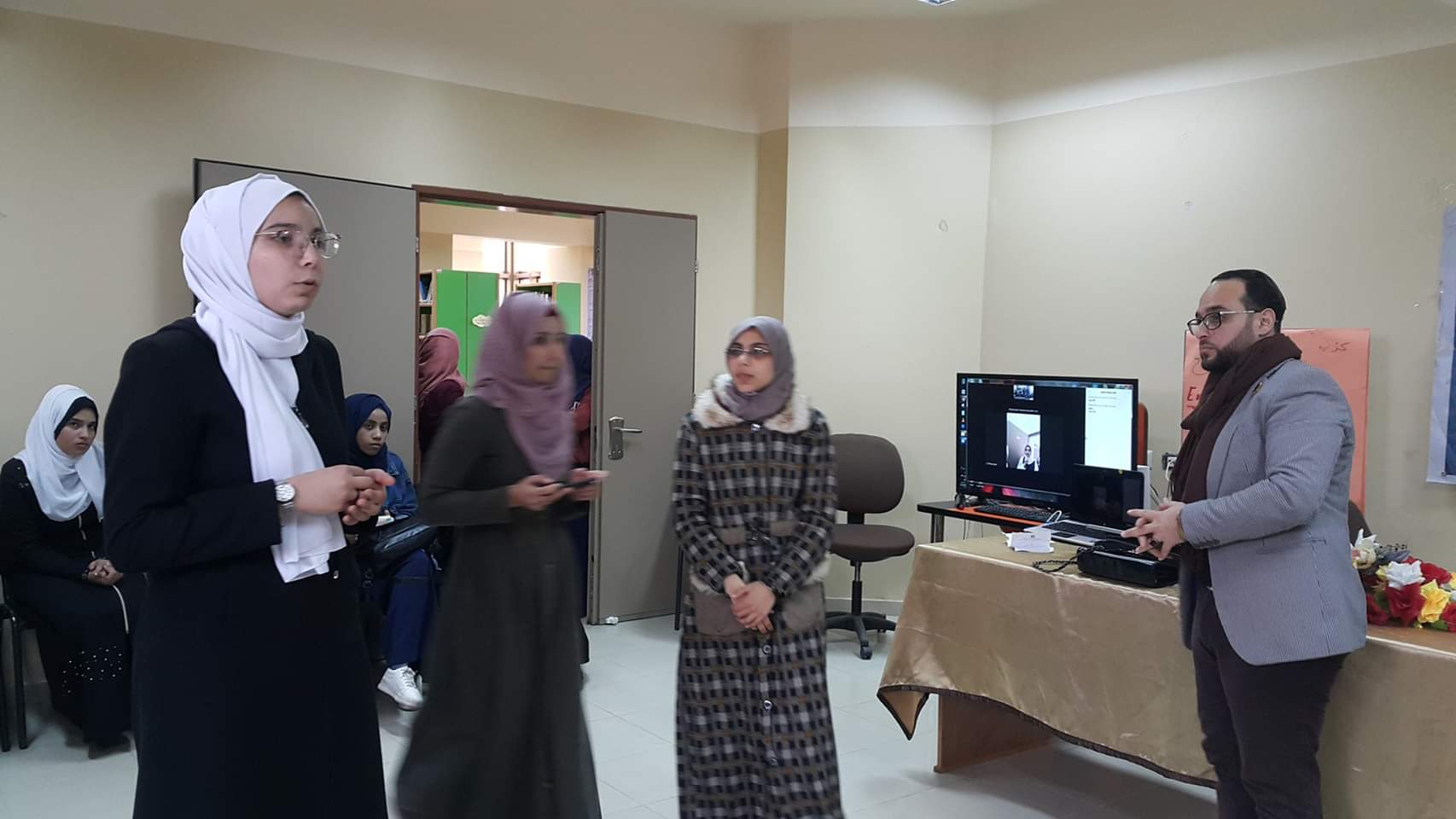 وتخلل الزيارة التعريف بالمنتدى ومجموعة من الأنشطة التفاعلية الهادفة التي نفذتها المتدربات مع الطالبات إضافة إلى نشاط تفاعلي عبر السكاي بي مع المعلمة شيماء سالم من مدرسة خانيونس.