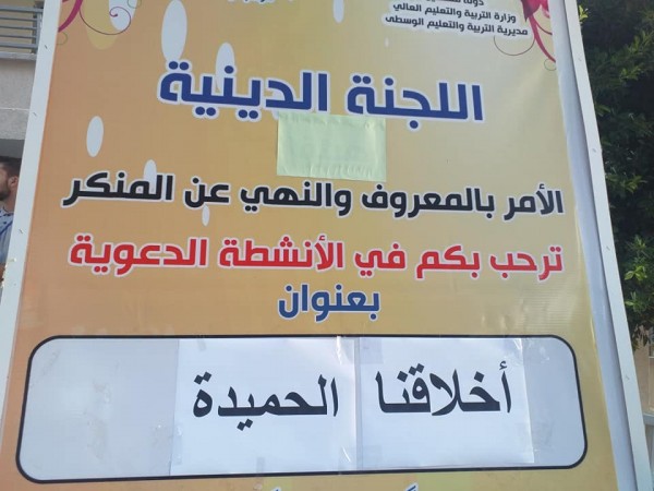 نفذت اللجنة الدينية اذاعة مدرسية بعنوان أخلاقنا الحميدة تحت اشراف مدير المدرسة أ.وجدي الزيان ومعلم التربية الاسلامية أ.أحمد خضورة أبو الولاء .
