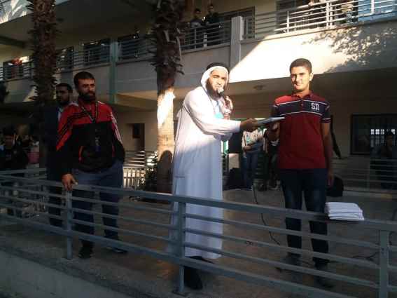 تكريم عينة من الطلبة الملتزمين بحلق وترتيب الشعر وفق منهاج الاسلام .