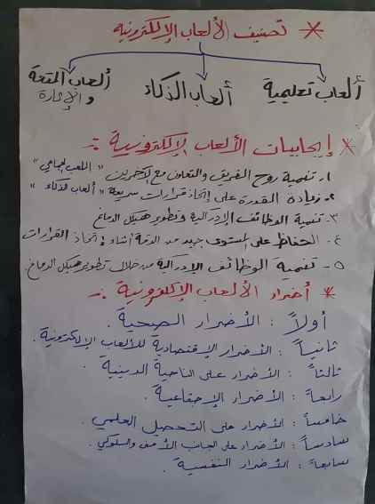 كما وتطرقت الى الأضرار الصحية والسلوكية للألعاب على المراهقين ، إضافة إلى كيفية تفادي مخاطر الألعاب الإلكترونية على صعيد الأسرة والمدرسة وأجهزة الرقابة وعلى الصعيد الصحي لتقليل الأضرار الصحية للألعاب الإلكترونية وحماية الأطفال حيث ينصح خبراء الصحة بأن لا تزيد مدة اللعب عن ساعتين يومياً شريطة أن يأخذ الشخص فترات راحة كل (15) دقيقة وألا تقل المسافة بين الطفل وشاشة الكمبيوتر عن (70 سم ) وأن يتم إبعاد الأطفال عن ألعاب الكمبيوتر الاهتزازية حتى يتجنبوا الإصابة المبكرة بأمراض عضلية خطيرة كارتعاش الذراعين.