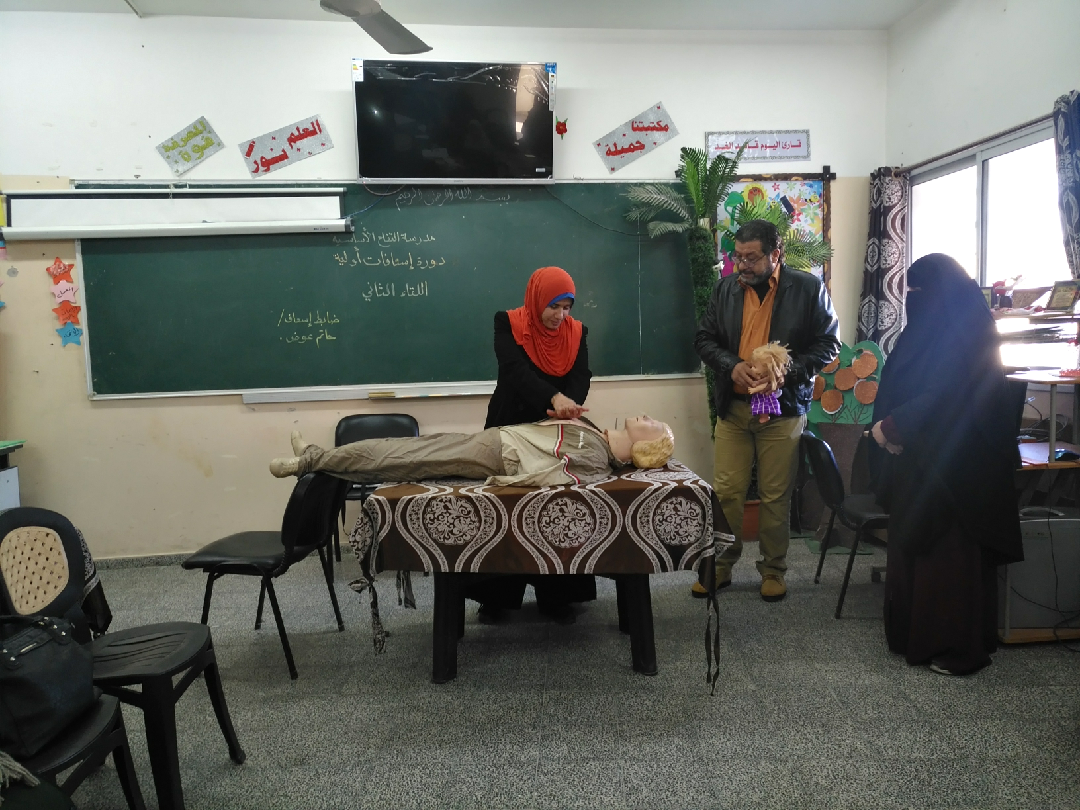 نوع النشاط: مسابقة الشراكة مع المجتمع المحلي عقدت مدرسة التفاح الأساسية للبنات دورة تدريبية في الإسعافات الأولية